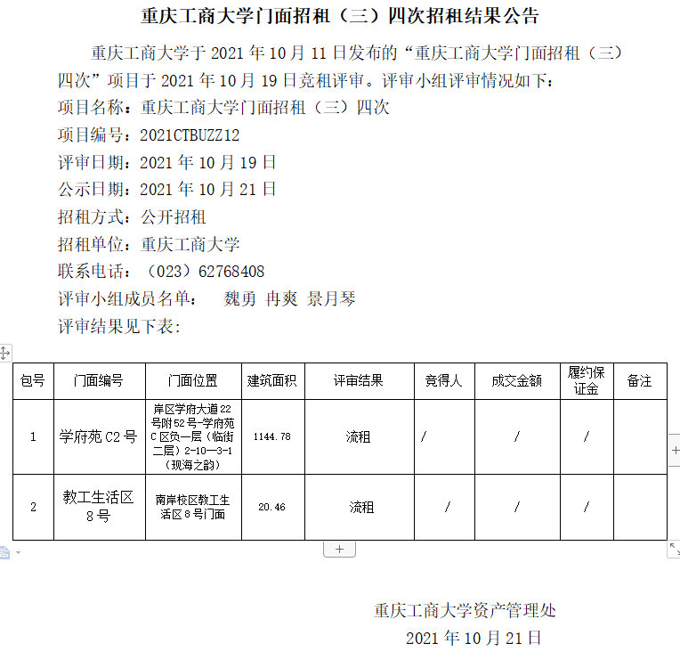 2003网站太阳集团门面招租(三)三次招租结果公告
