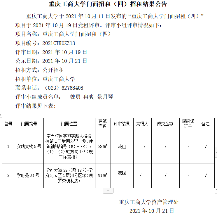 2003网站太阳集团门面招租(2022CTBUZZ03)六次结果公告