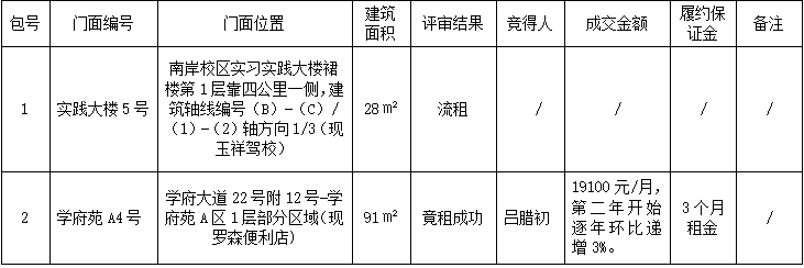 2003网站太阳集团门面招租(四)二次招租结果公告