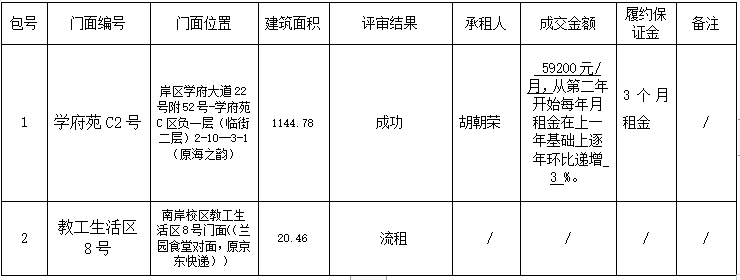 2003网站太阳集团门面招租(三)七次招租结果公告