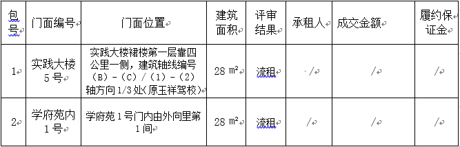 评审结果: 因有效报名商户数量不满足招租文件要求,故该项目本次招租流租。