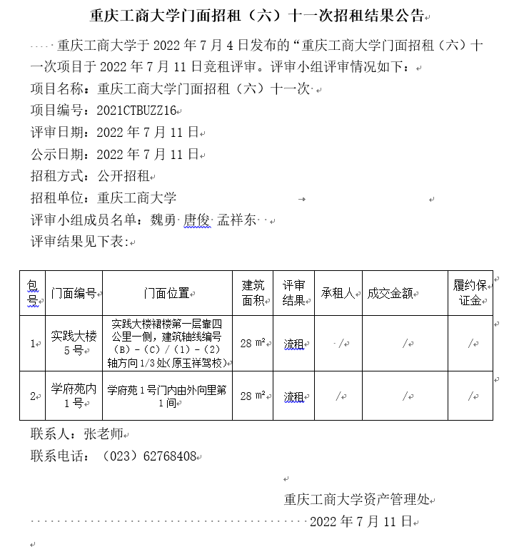 2003网站太阳集团门面招租(2022CTBUZZ03)四次结果公告