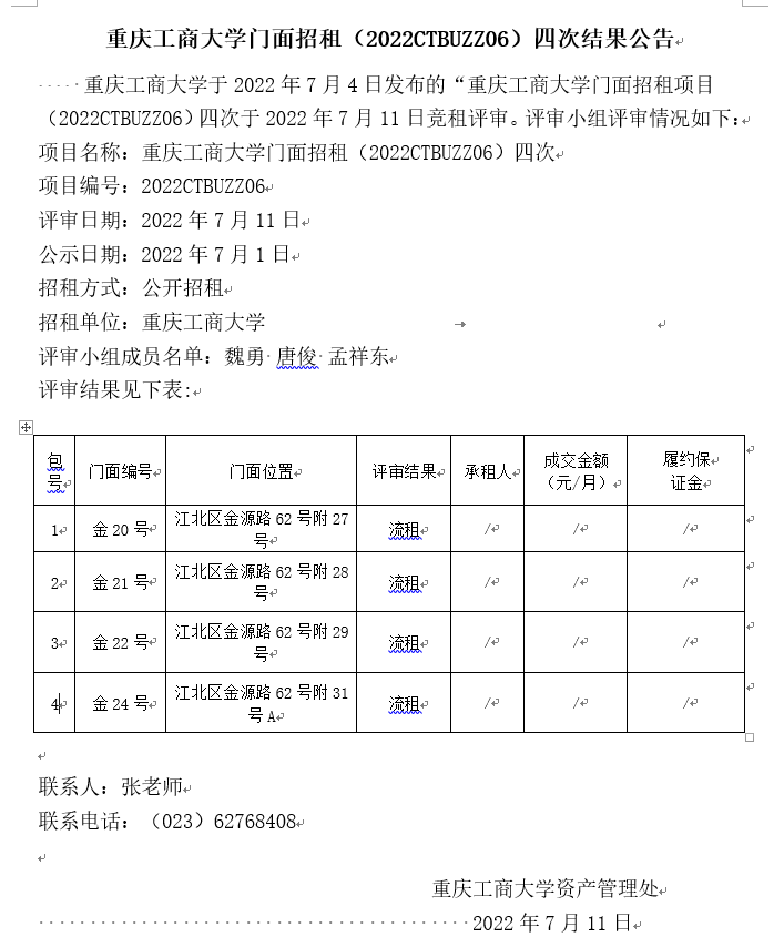 2003网站太阳集团门面招租(2022CTBUZZ06)四次结果公告