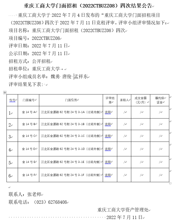 2003网站太阳集团门面招租(2022CTBUZZ08)四次结果公告