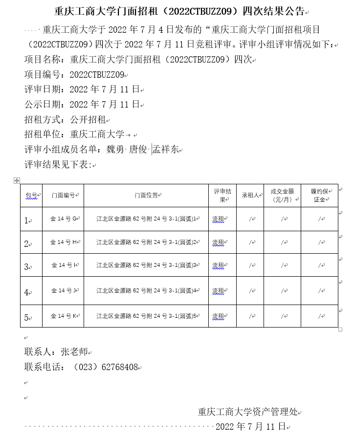 2003网站太阳集团门面招租(2022CTBUZZ09)四次结果公告