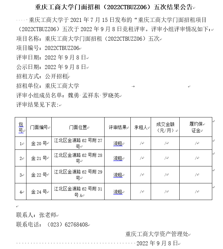 2003网站太阳集团门面招租(2022CTBUZZ09)四次结果公告