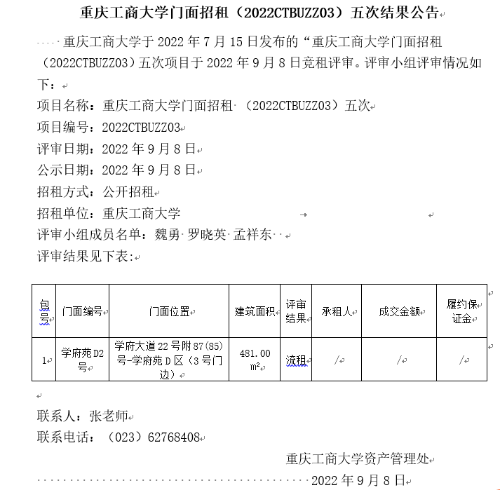 2003网站太阳集团门面招租(2022CTBUZZ03)五次结果公告