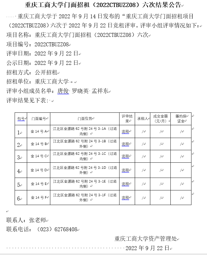 2003网站太阳集团门面招租(2022CTBUZZ09)六次结果公告