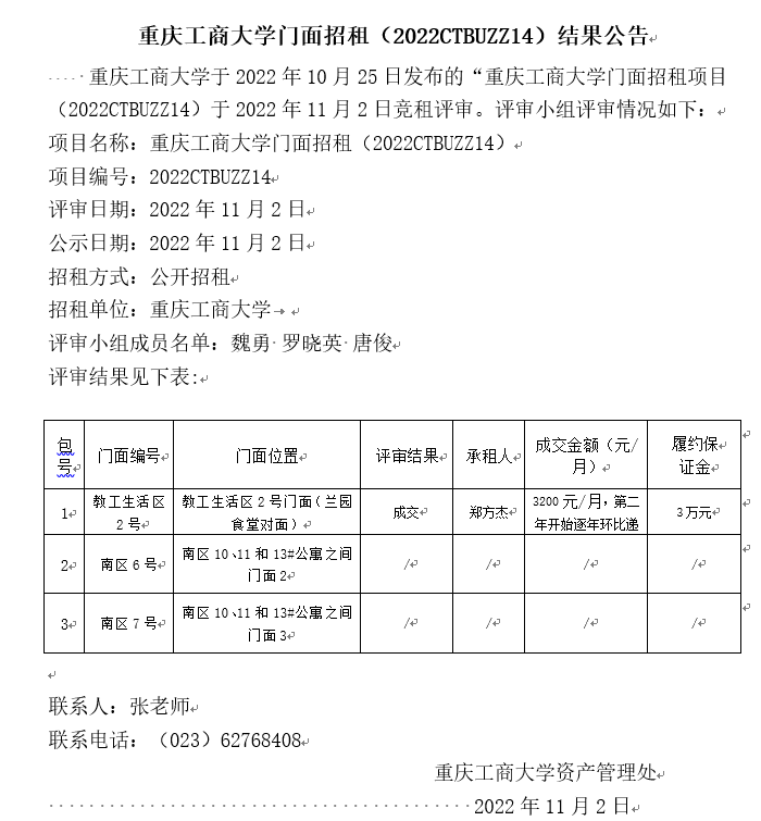 2003网站太阳集团门面招租(2022CTBUZZ03)七次结果公告
