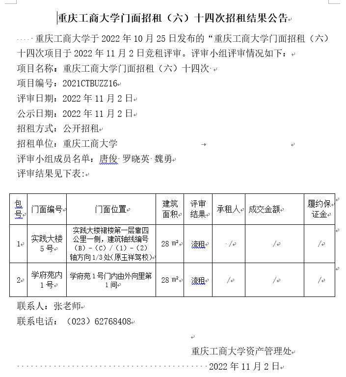 2003网站太阳集团门面招租(2022CTBUZZ03)七次结果公告