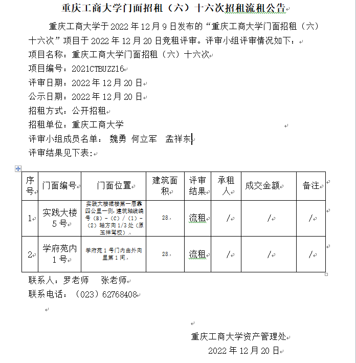 2003网站太阳集团门面招租(2022CTBUZZ08)七次结果公告