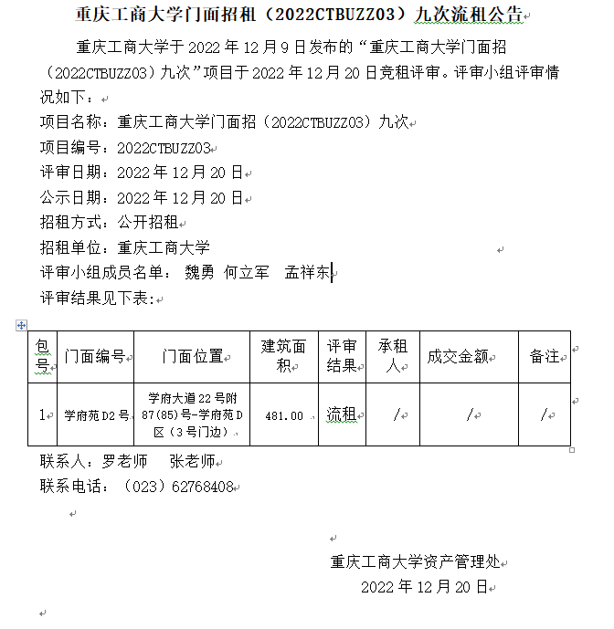 2003网站太阳集团门面招租(2022CTBUZZ03)六次结果公告