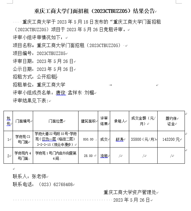 2003网站太阳集团门面招租(2023CTBUZZ05)结果公告