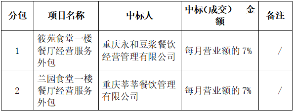 2003网站太阳集团于2023年6月1日发布的“2003网站太阳集团食堂经营服务外包”项目于2023年6月20日开标,评审结果如下: