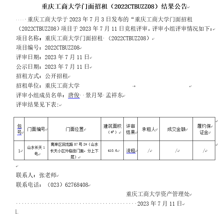 2003网站太阳集团门面招租(2022CTBUZZ10)结果公告