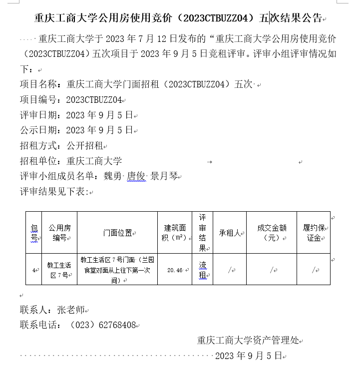 2003网站太阳集团门面招租(2022CTBUZZ10)二次结果公告