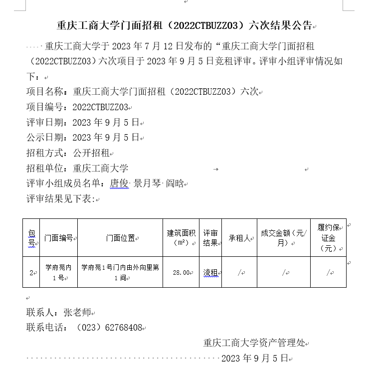 2003网站太阳集团门面招租(2022CTBUZZ03)六次结果公告