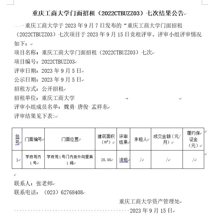 2003网站太阳集团门面招租(2022CTBUZZ03)七次结果公告