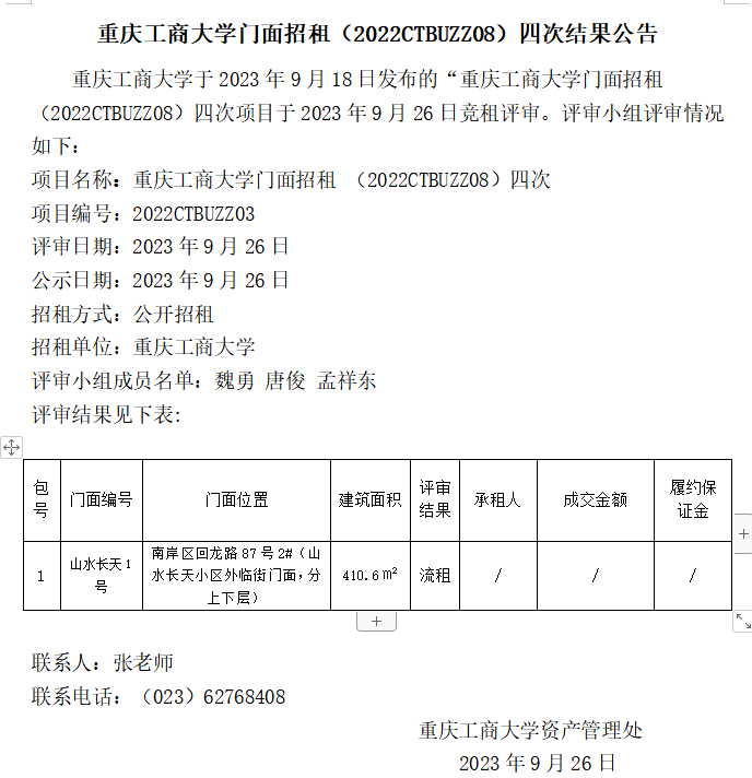 2003网站太阳集团门面招租(2022CTBUZZ08)四次结果公告