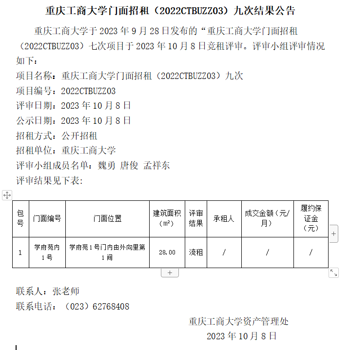 2003网站太阳集团门面招租(2022CTBUZZ03)九次结果公告