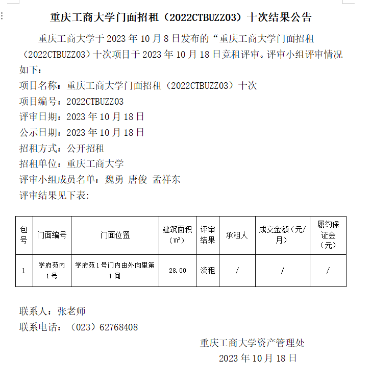 2003网站太阳集团门面招租(2022CTBUZZ03)十次结果公告