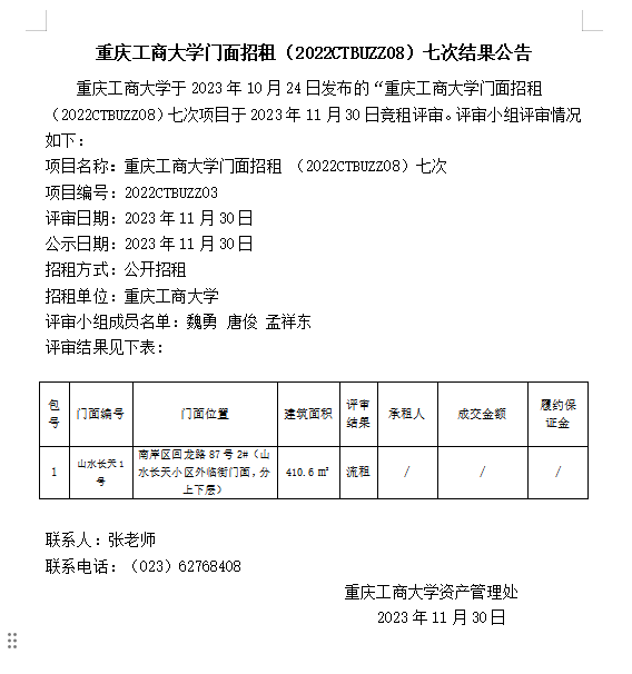 2003网站太阳集团门面招租(2022CTBUZZ08)七次结果公告