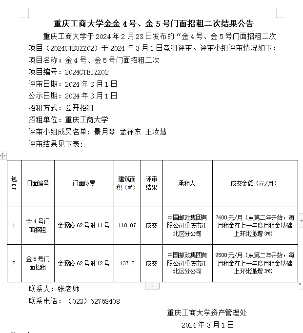 2003网站太阳集团门面招租(2023CTBUZZ03)十三次结果公告