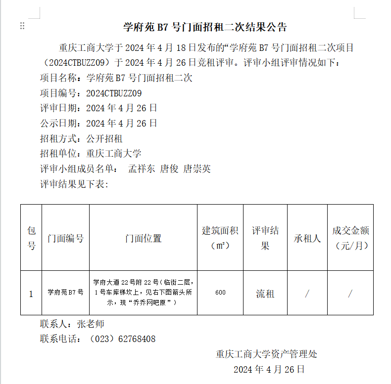 江北区金源路62号附24号2-1、3-1和附29号、附31号A 门面招租(六次)结果公告