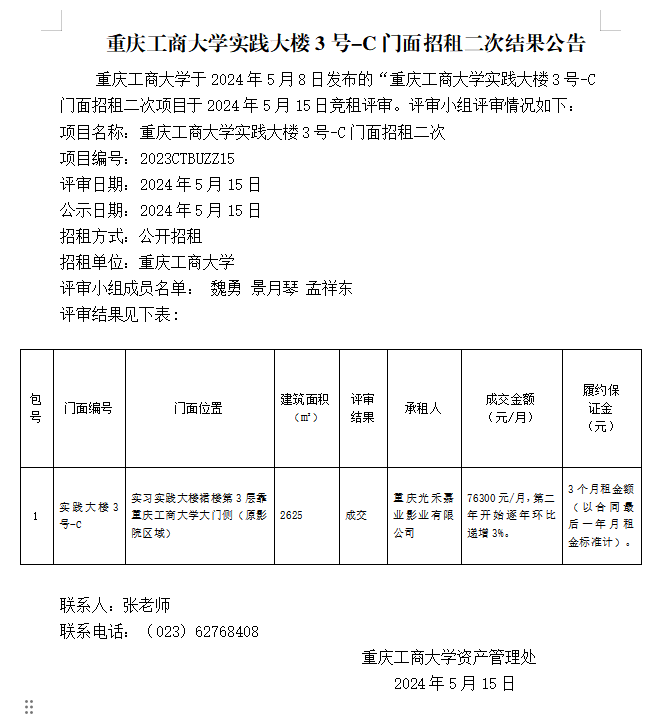 2003网站太阳集团实践大楼3号-C门面招租二次结果公告