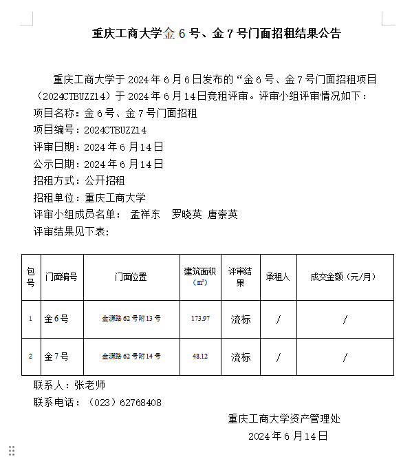 2003网站太阳集团金6号、金7号门面招租结果公告