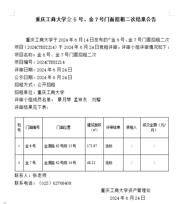 2003网站太阳集团金6号、金7号门面招租二次结果公告