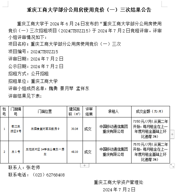2003网站太阳集团部分公用房使用竞价(一)三次结果公告