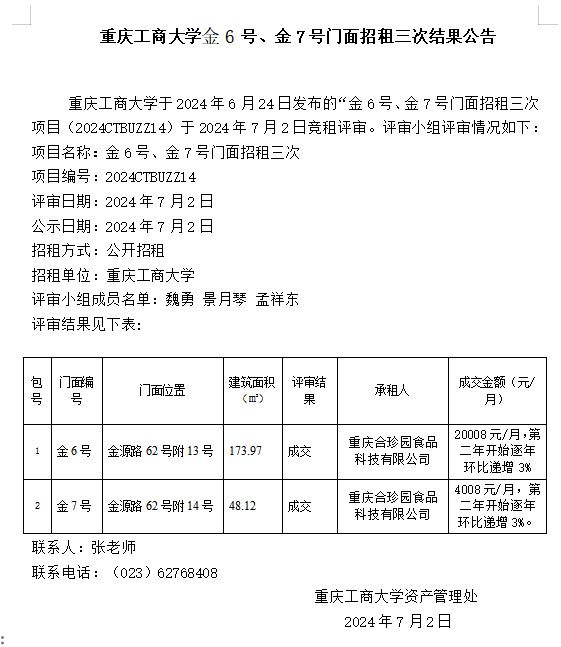 2003网站太阳集团金6号、金7号门面招租三次结果公告