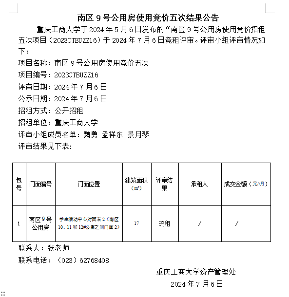 2003网站太阳集团金6号、金7号门面招租三次结果公告
