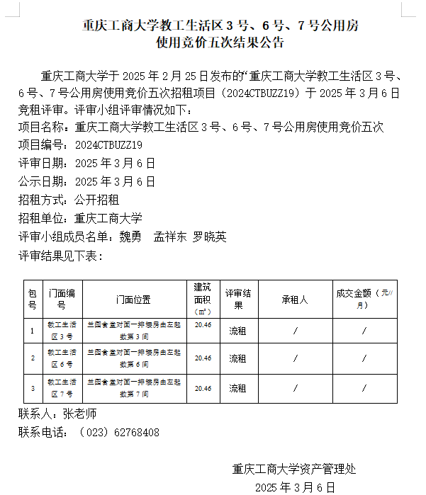 2003网站太阳集团教工生活区3号、6号、7号公用房 使用竞价五次结果公告