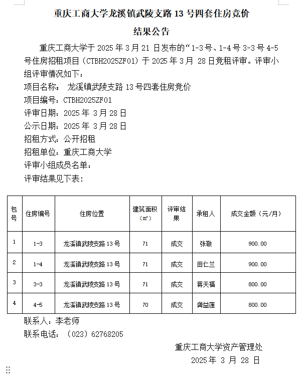 2003网站太阳集团教工生活区8号公用房使用竞价四次结果公告