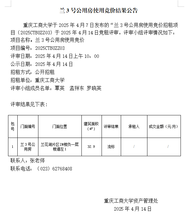 2003网站太阳集团教工生活区3号、6号、7号公用房 使用竞价九次结果公告