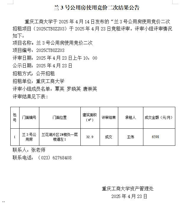 2003网站太阳集团教工生活区3号、6号、7号公用房 使用竞价十次结果公告