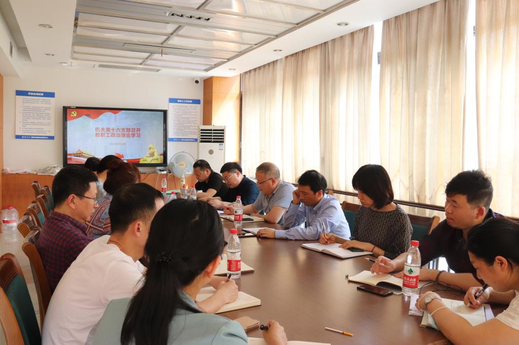 3月18日下午2:30,机关党委第十六支部在厚德楼8002会议室开展2月份党的组织生活暨职工政治理论学习,会议由支部书记刘强主持,全体党员和职工参加。
